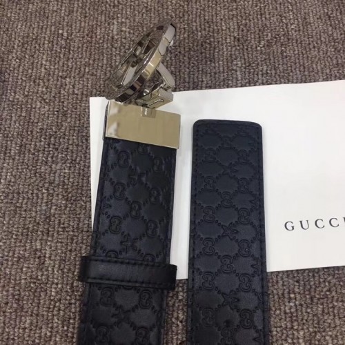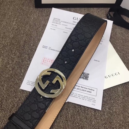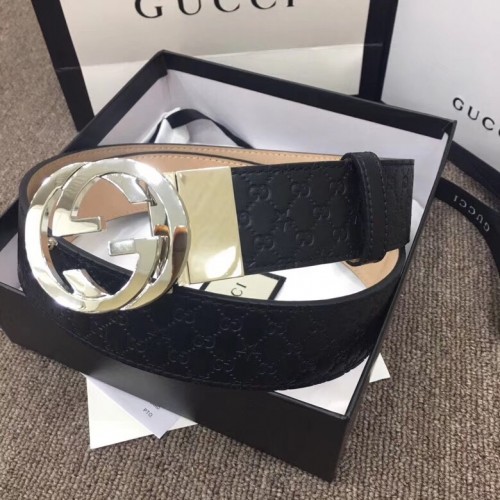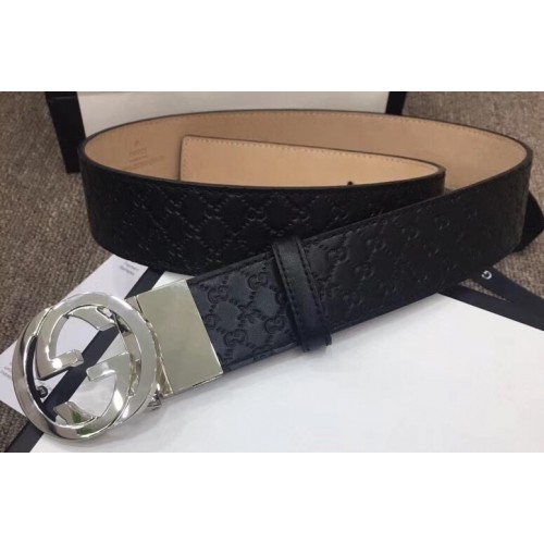 Gucci Width 4cm Signature Leather Belt Black with Interlocking G Buckle