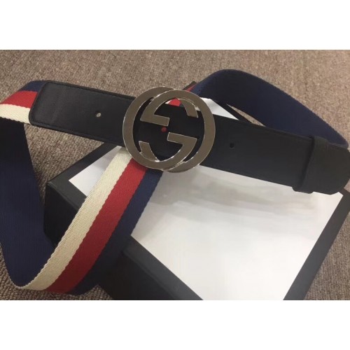 Gucci Width 4cm Sylvie Web and Leather Belt Black with Interlocking G Buckle