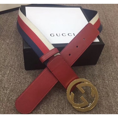 Gucci Width 4cm Sylvie Web and Leather Belt Red with Interlocking G Buckle