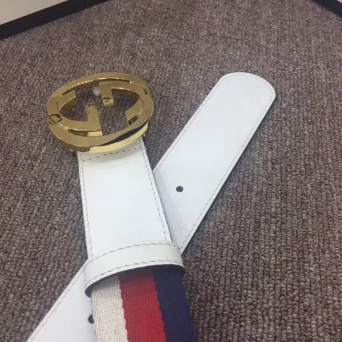 Gucci Width 4cm Sylvie Web and Leather Belt White with Interlocking G Buckle