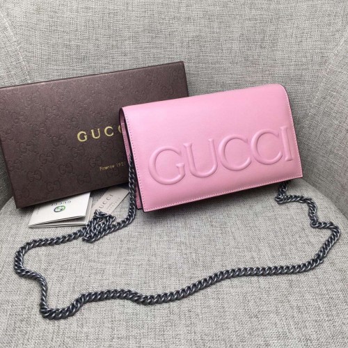 size:20*12*4.5 CMThe Gucci XL mini bag has an embossed Gucci logo that extends across the front of the bag and a removable chain strap. Made in our smooth, classic leather.Hibiscus red leatherEmbossed Gucci logoSix card slots, one flat pocket, zip pocket with gusset, side pocket, external flat pocket for iPhoneRemovable chain strapMade in Italy