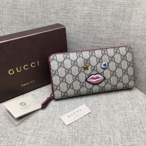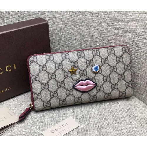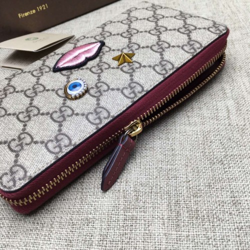Gucci zip around wallet with embroidered face 431392 red