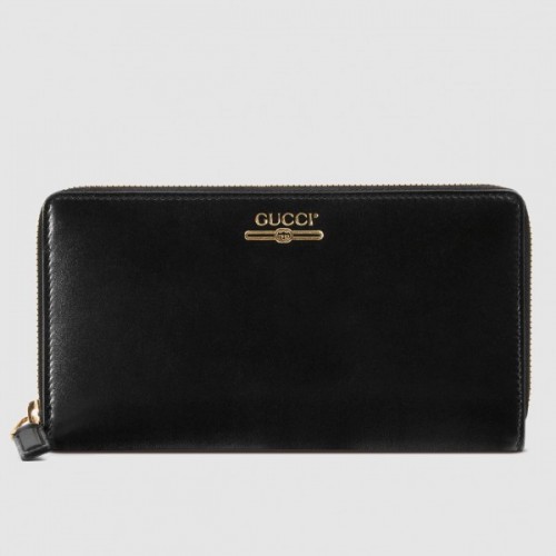 Gucci Zip Around Wallet With Gucci Logo In Black Leather