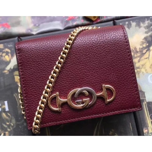 Gucci Zumi Grainy Leather Card Case Wallet 570660 Burgundy 2019