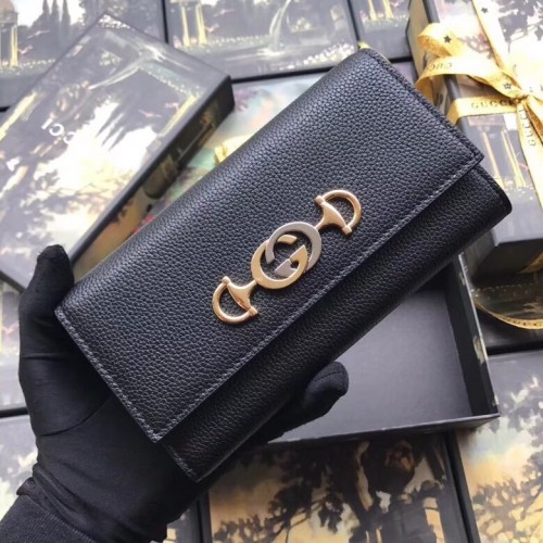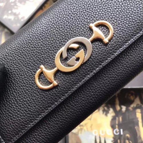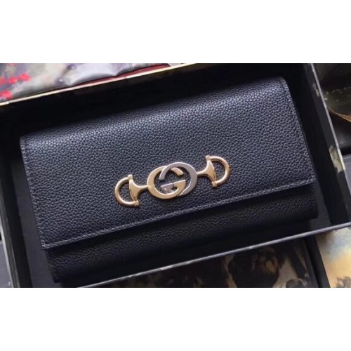 Gucci Zumi Grainy Leather Continental Wallet 573612 Black 2019