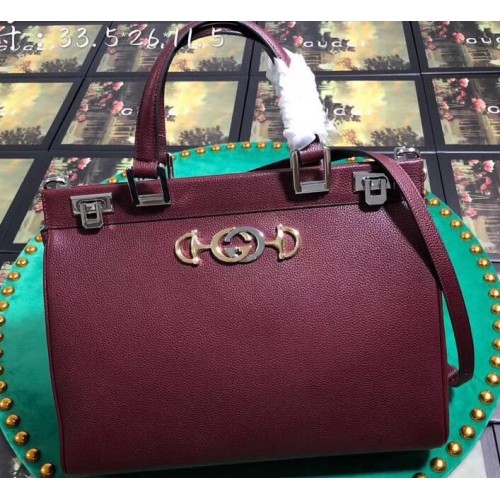 Gucci Zumi Grainy Leather Medium Top Handle Bag 564714 Burgundy 2019