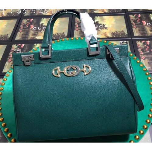 Gucci Zumi Grainy Leather Medium Top Handle Bag 564714 Green 2019