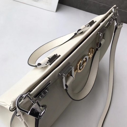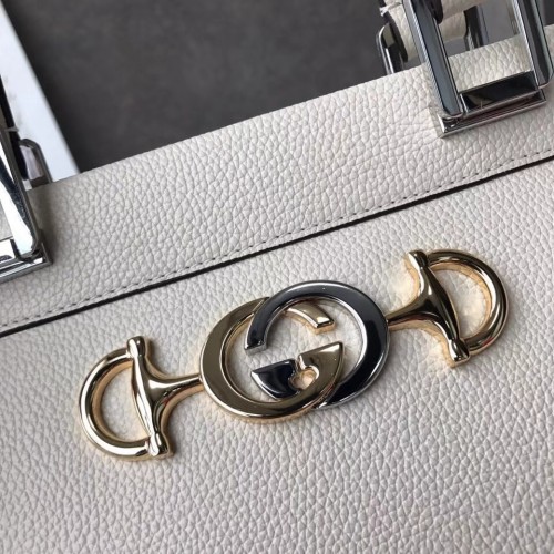 Gucci Zumi Grainy Leather Medium Top Handle Bag 564714 White 2019