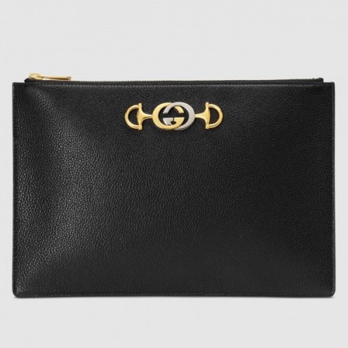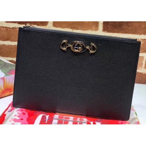 Gucci Zumi Grainy Leather Pouch Clutch Bag 570728 Black 2019