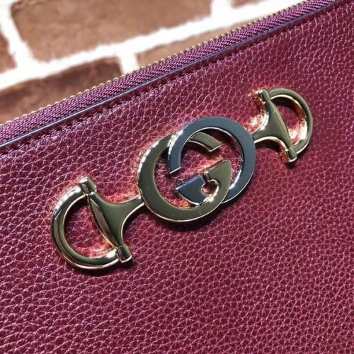Gucci Zumi Grainy Leather Pouch Clutch Bag 570728 Burgundy 2019