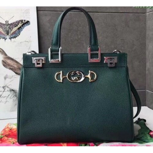 Gucci Zumi Grainy Leather Small Top Handle Bag 569712 Green 2019