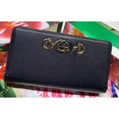 Gucci Zumi Grainy Leather Continental Wallet 573612 Black 2019