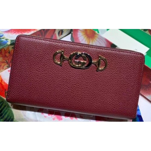 Gucci Zumi Grainy Leather Zip Around Wallet 570661 Burgundy 2019