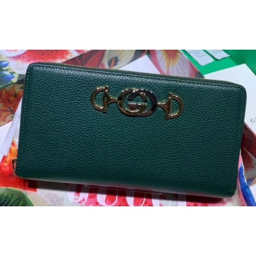 Gucci Zumi Grainy Leather Zip Around Wallet 570661 Green 2019