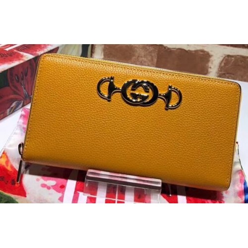 Gucci Zumi Grainy Leather Zip Around Wallet 570661 Yellow 2019
