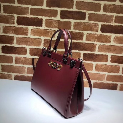Gucci Zumi Smooth Leather Medium Top Handle Bag 564714 Burgundy 2019