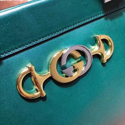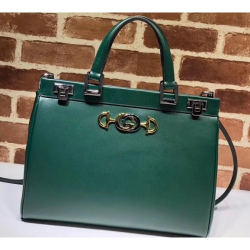 Gucci Zumi Smooth Leather Medium Top Handle Bag 564714 Green 2019