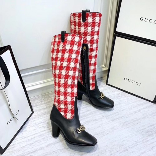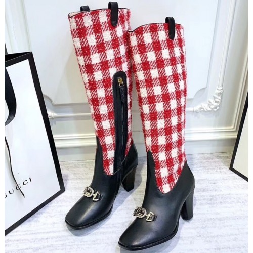 Gucci Zumi Tweed Knee Boots 577652 Check Red/White 2019