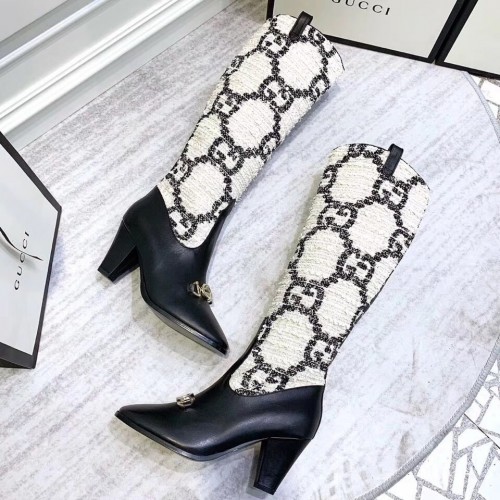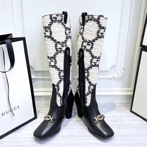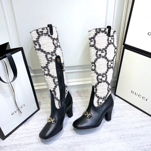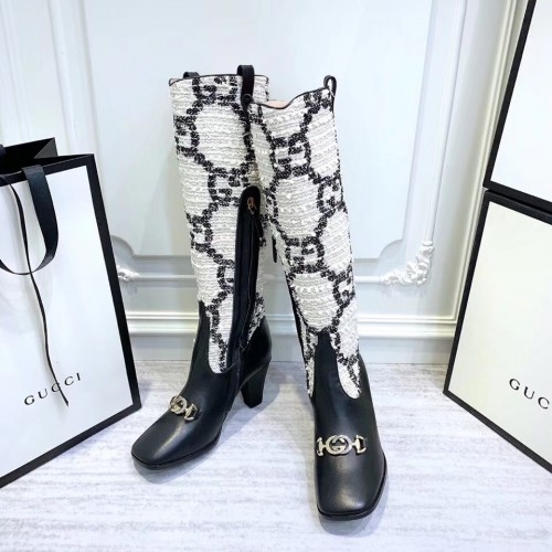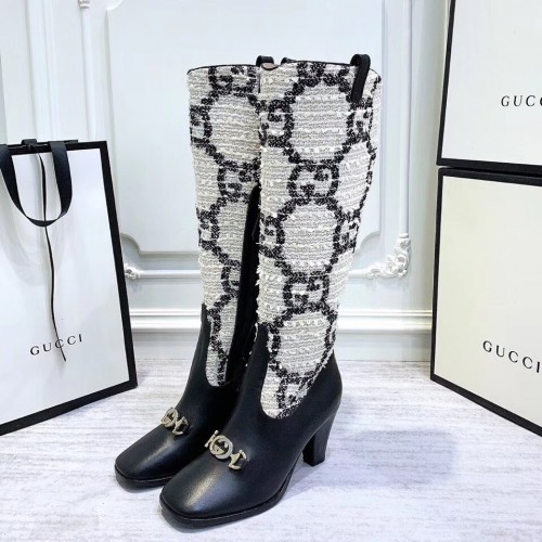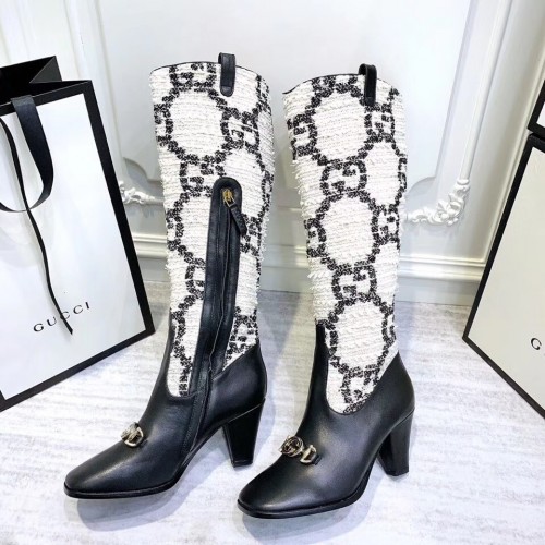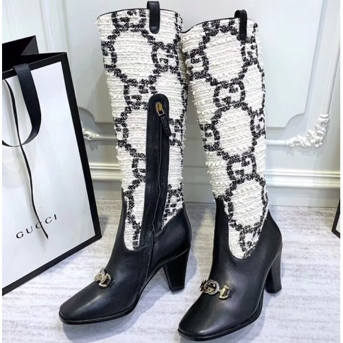 Gucci Zumi Tweed Knee Boots 577652 GG White 2019