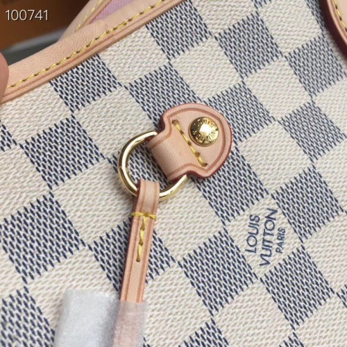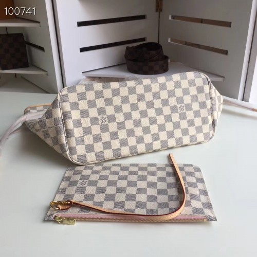 Louis Vuittom damier azur Canvas Neverfull MM Bag Rose Ballerine N41605
