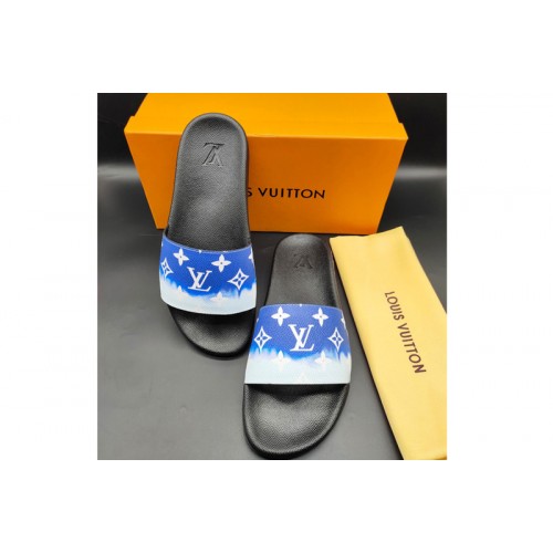 Louis Vuitton 1A3PSB LV Waterfront Mule Sandal in Blue Monogram rubber