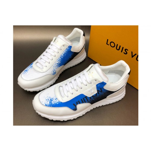 Louis Vuitton 1A5ASF LV Run Away Sneaker in white calf leather and Blue textile printed