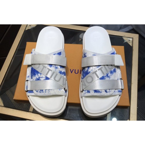 Louis Vuitton 1A5HR1 LV Honolulu Mule in White Monogram Denim With Blue