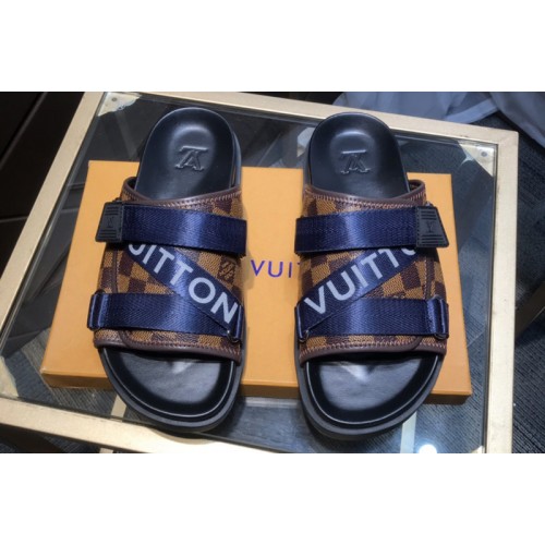 Louis Vuitton 1A5S85 LV Honolulu Mule in Damier Ebene Canvas With Blue