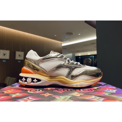 Inspired by Virgil Abloh’s Spring-Summer 2020 show for Louis Vuitton, the LV Trail sneaker combines fashion with an outdoor spirit. This version comes in metallic leather and technical mesh with the Vuitton signature embroidered on the side. This model is distinguished by its oversized outsole, which is decorated with motifs of Monogram Flowers.