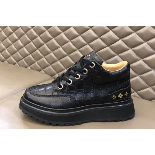 Louis Vuitton 1A7WLH LV Abbesses derby Shoe in Black Crocodile Print Glazed calf leather