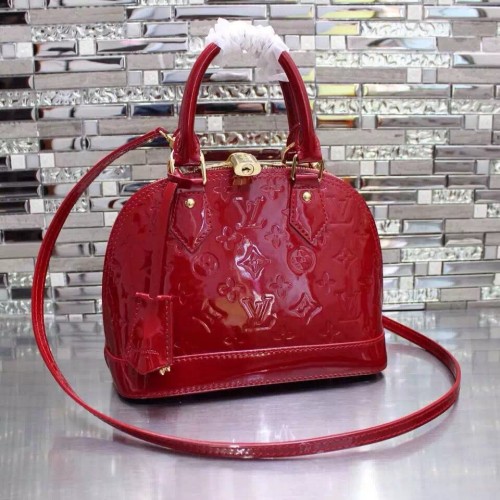 size:25cmThe charming Alma BB traces its pedigree to the original Art Deco icon, introduced in 1934. This miniature version in gleaming Monogram Vernis easily holds keys, wallet, smartphone and lipstick. With a strap that adjusts the bag to waist or hip height, the Alma BB can be worn across the body for hands-free ease.