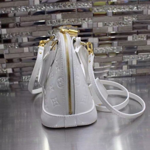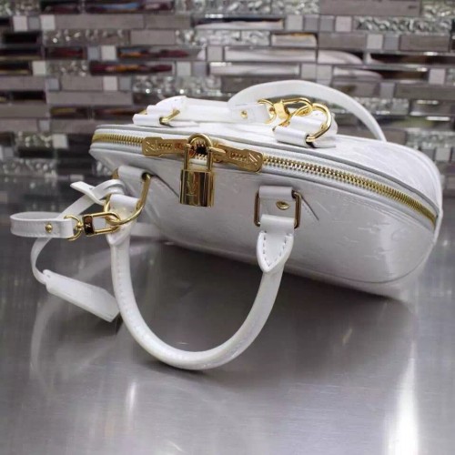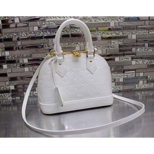 size:25cmThe charming Alma BB traces its pedigree to the original Art Deco icon, introduced in 1934. This miniature version in gleaming Monogram Vernis easily holds keys, wallet, smartphone and lipstick. With a strap that adjusts the bag to waist or hip height, the Alma BB can be worn across the body for hands-free ease.