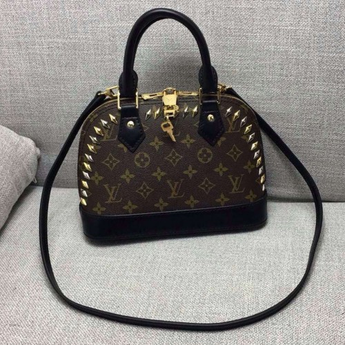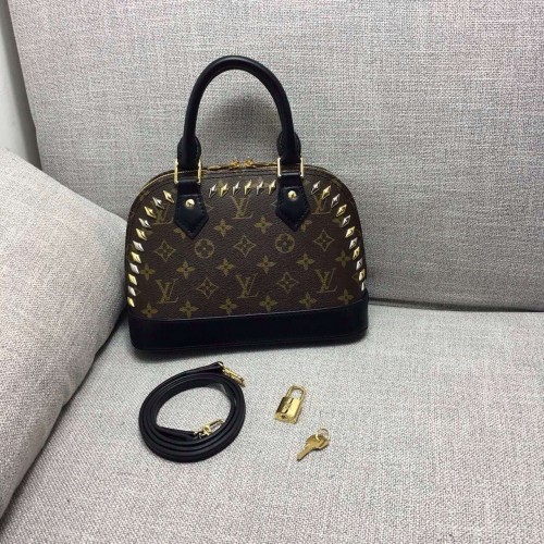 Size:25*11*19cmThe subtle gleam of metal stones lights up this new iteration of the iconic Alma. A directional yet practical bag (it’s surprisingly spacious), finished with Cruise 16 signature details: an engraved D-ring and LV nametag.- Monogram canvas- Silver, gold-toned and pink metallic pieces- Sheepskin lining- Removable leather strap- Signature LV engraved, hinged D-ring- Nametag with metallic LV signature- Double zip closure with padlock- 2 inside pockets- 4 bottom studs