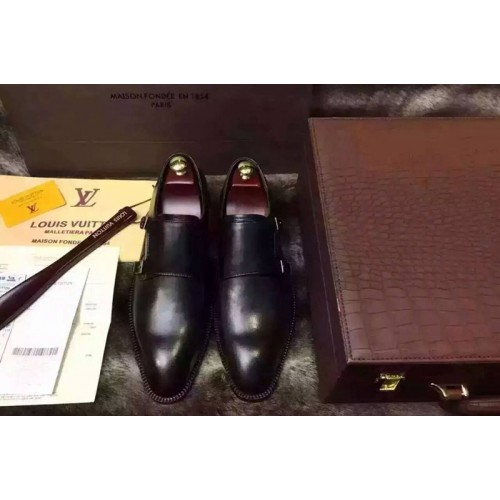 Louis Vuitton Black Top Quality Leather Shoes With Boxes