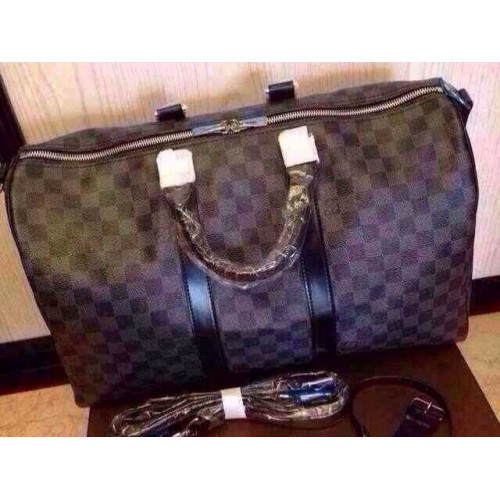 An elegant travel bag in Damier Graphite canvas. Ideal for travelling and taking all the necessities, this bag has a generous amount of space. Can be comfortably carried by hand or on the shoulder.
