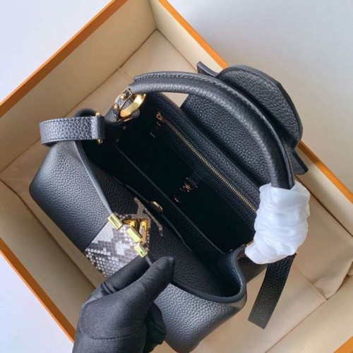 Louis Vuitton Capucines BB Bag Central Stripe Python N94220 Black