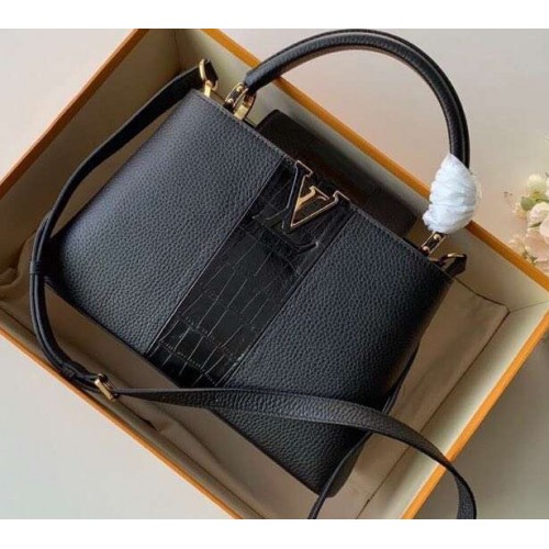 Louis Vuitton Capucines PM Bag Central Stripe Crocodile Black