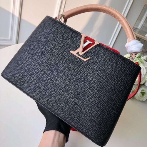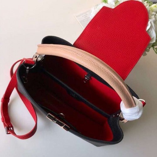 Louis Vuitton Capucines PM Bag Colorblock M51814 Black/Apricot/Red