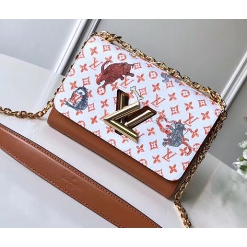 Louis Vuitton Catogram Monogram Canvas Twist MM Bag M44408 White/Brown 2018