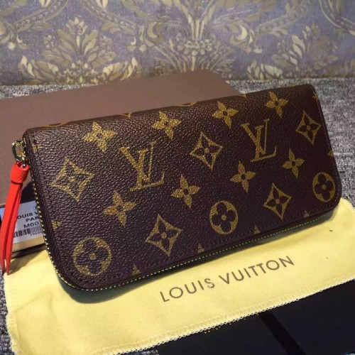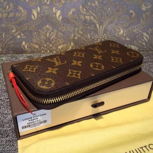 LOUIS VUITTON CLEMENCE WALLET Chili Red M60743SKU:1C018-019Size:19*9*2cmMeet the Clémence Wallet, compact yet with high capacity and in smart, practical Monogram canvas. And yet playful femininity is also part of its charm with its brightly coloured lining and leather zipper.- Calf leather trimmings- 1 leather zipper- Calf leather lining- Shiny golden brass metallic pieces- 1 coloured leather zipper matching coloured interior calf leather lining- 8 credit card slots- 1 zipped interior pocket for coins- 2 large gusseted compartments for banknotes- 2 flat pockets for tickets and notes