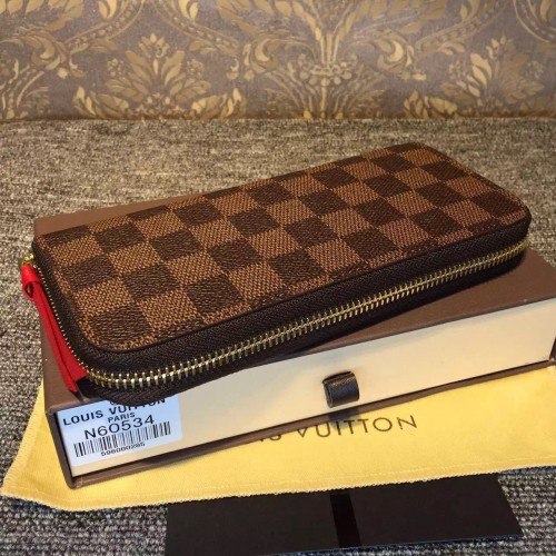LOUIS VUITTON CLEMENCE WALLET Damier Ebene Canvas N60534SKU:1C018-015Size:19*9*2cmMeet the Clémence Wallet, compact yet with high capacity and in smart, practical Monogram canvas. And yet playful femininity is also part of its charm with its brightly coloured lining and leather zipper.- Calf leather trimmings- 1 leather zipper- Calf leather lining- Shiny golden brass metallic pieces- 1 coloured leather zipper matching coloured interior calf leather lining- 8 credit card slots- 1 zipped interior pocket for coins- 2 large gusseted compartments for banknotes- 2 flat pockets for tickets and notes