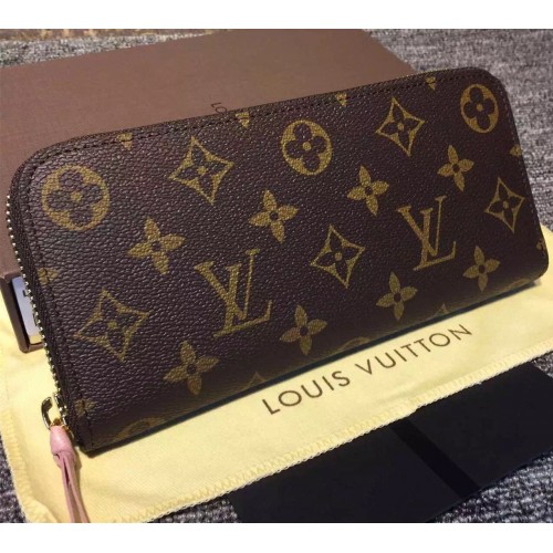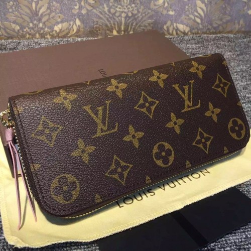 LOUIS VUITTON CLEMENCE WALLET Rose Ballerine M61298SKU:1C018-016Size:19*9*2cmMeet the Clémence Wallet, compact yet with high capacity and in smart, practical Monogram canvas. And yet playful femininity is also part of its charm with its brightly coloured lining and leather zipper.- Calf leather trimmings- 1 leather zipper- Calf leather lining- Shiny golden brass metallic pieces- 1 coloured leather zipper matching coloured interior calf leather lining- 8 credit card slots- 1 zipped interior pocket for coins- 2 large gusseted compartments for banknotes- 2 flat pockets for tickets and notes
