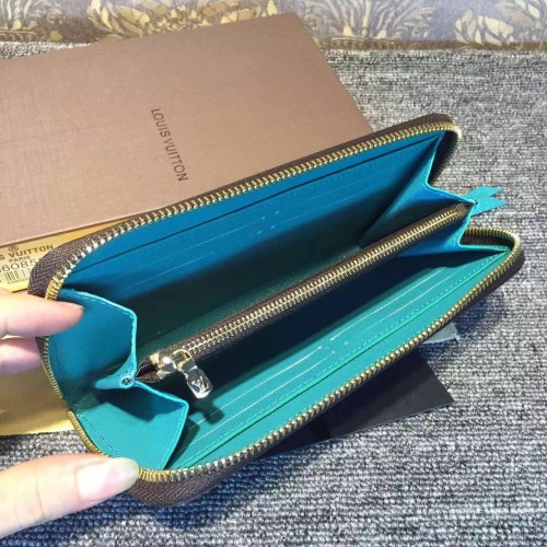 LOUIS VUITTON CLEMENCE WALLET Turquoise M60858SKU:1C018-017Size:19*9*2cmMeet the Clémence Wallet, compact yet with high capacity and in smart, practical Monogram canvas. And yet playful femininity is also part of its charm with its brightly coloured lining and leather zipper.- Calf leather trimmings- 1 leather zipper- Calf leather lining- Shiny golden brass metallic pieces- 1 coloured leather zipper matching coloured interior calf leather lining- 8 credit card slots- 1 zipped interior pocket for coins- 2 large gusseted compartments for banknotes- 2 flat pockets for tickets and notes