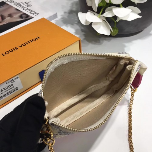 5.5 x 3.5 x 0.8 inches (Length x Height x Width) - Zipper closure- Textile lining- Golden metallic brass pieces including the chain- Can be carried on the wrist