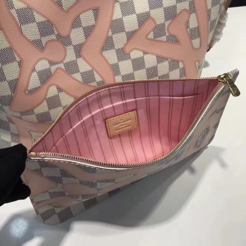 Louis Vuitton Damier Azur Canvas Nerverfull MM Tote Bag N41050 Pink 2017