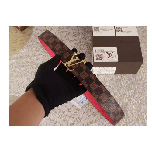 Louis Vuitton Damier Ebene Canvas Belts With Gold Buckle Red