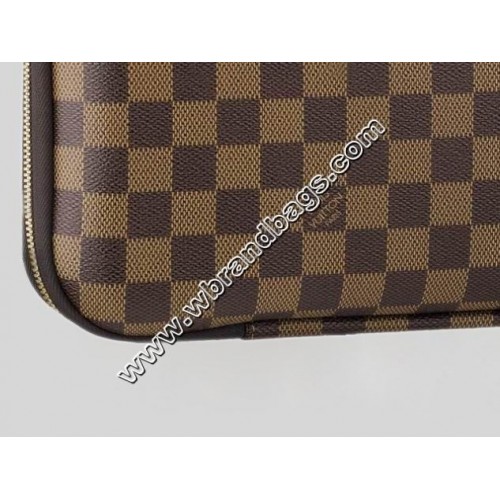 This slim and practical computer sleeve has a double zipper closure. It is made from House classic Damier canvas with a foam-lined computer compartment highlighted by Louis Vuitton signature details.
