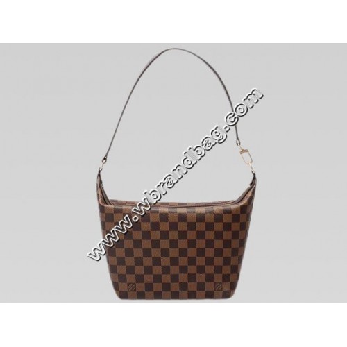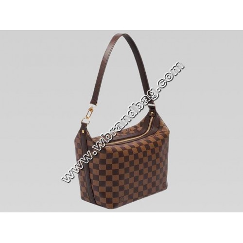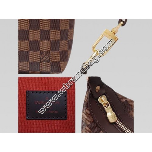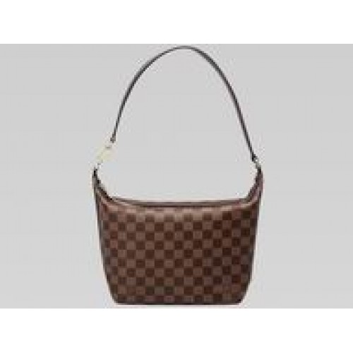 - Damier canvas with smooth chocolate leather trim