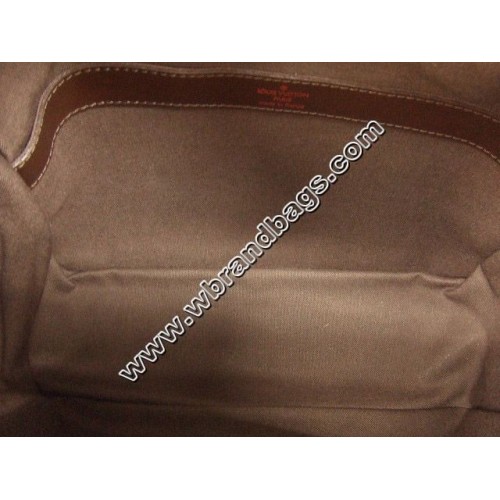 - Damier canvas, adjustable chocolate-colored textile shoulder strap, terracotta-colored fabric lining