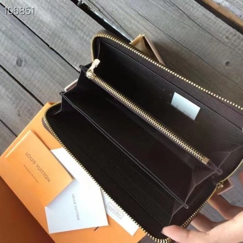 THIS REPLICA LOUIS VUITTON DAMIER EBENE CANVAS ZIPPY COMPACT WALLET N60028 COMES WITH: LV Gift Box, Serial and model numbers,LV care booklet, LV cards and Tags, and copy of the genuine receipt from an official LV store.